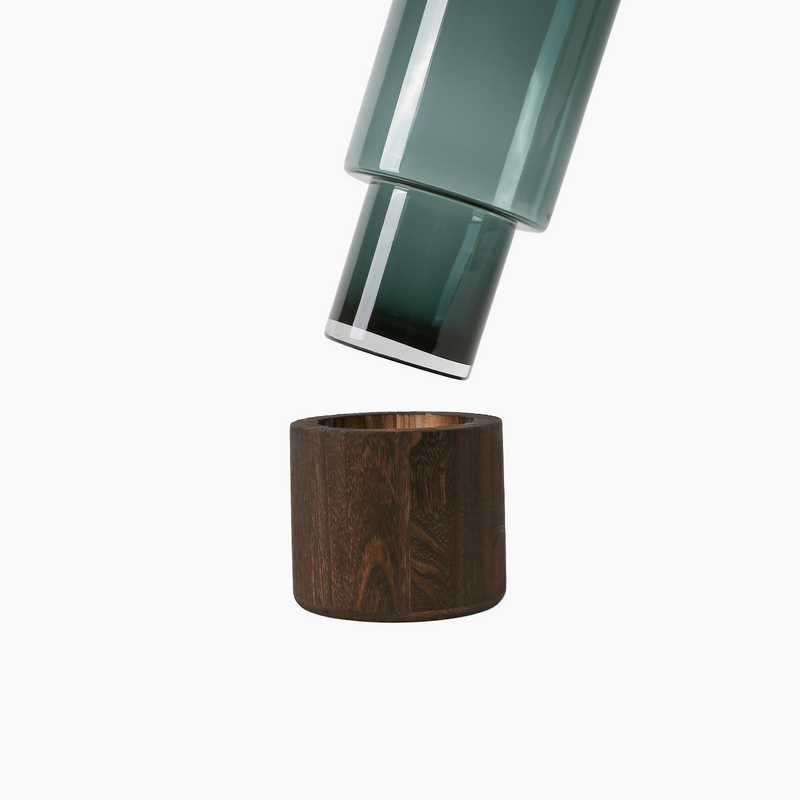 Product Description: Jasmin Concepts' "Dark Green Wooden Stand Vase XXL" design adds elegance to your home with a modern and sophisticated touch. The perfect harmony between natural wood and the calming shade of green makes this vase a striking focal point in any space. The handcrafted wooden stand, combined with the elegance of the vase's glass surface, allows you to create a stylish atmosphere both at home and in venues such as hotels or restaurants. It's a perfect choice for creating a warm atmosphere for family gatherings and cold days during the winter months.
