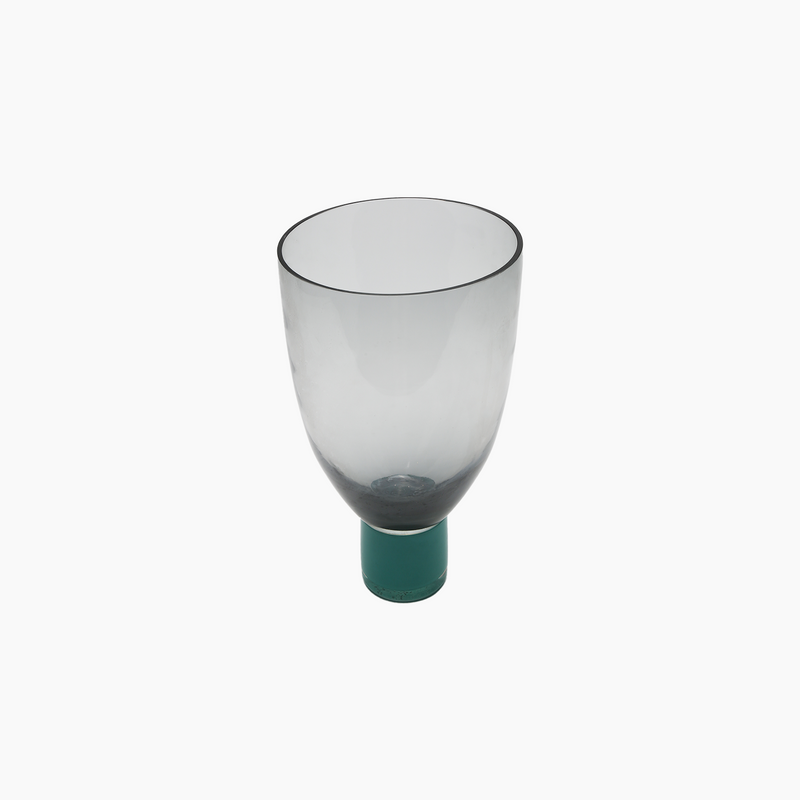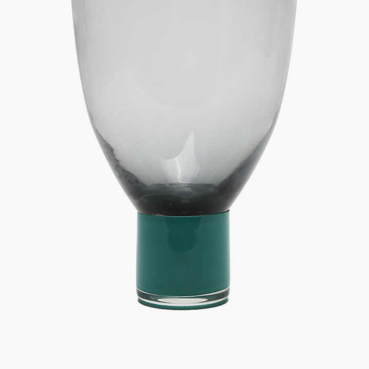 The Goblet Vase adds an aesthetic touch to modern decor with its elegant design. Made of transparent gray glass, the vase creates a sophisticated contrast with the green details at its base. Suitable for use both at home and in venues such as hotels or restaurants, this vase attracts attention in any setting with its elegance and sophistication. With its contemporary style, it appeals to those who appreciate minimalism while also adding sophistication to your space.