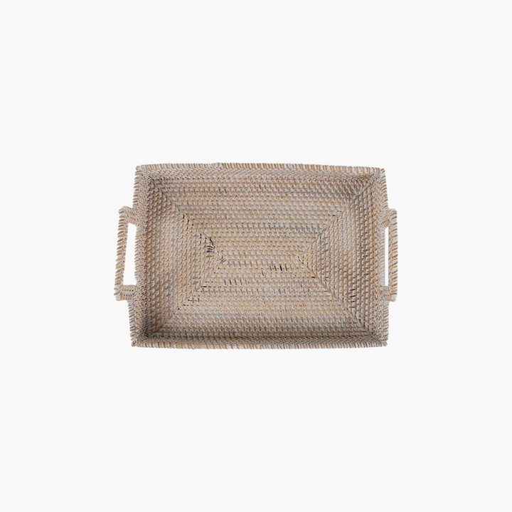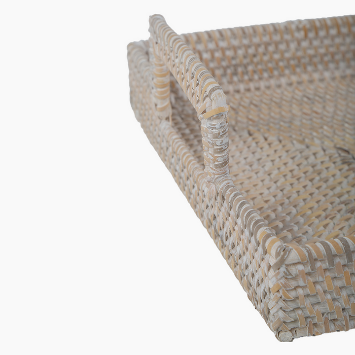 Product Name: Bamboo Handwoven Antique White Rectangular Tray with Handles