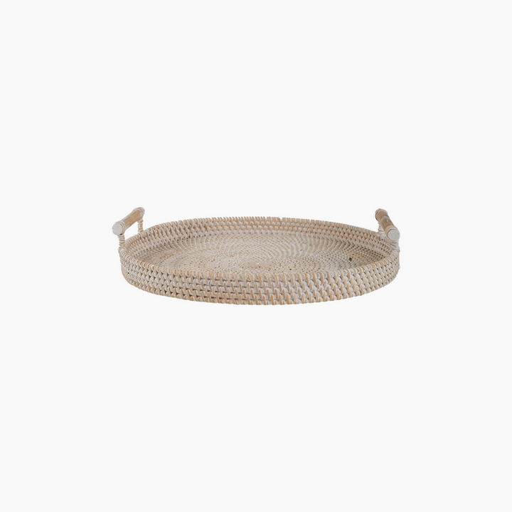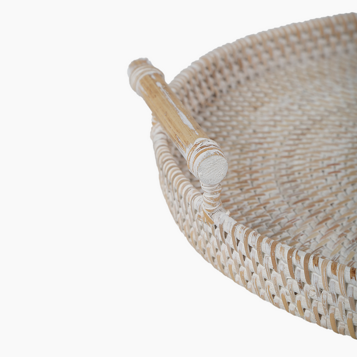 Product Name: Bamboo Handwoven Antique White Round Tray with Handles
