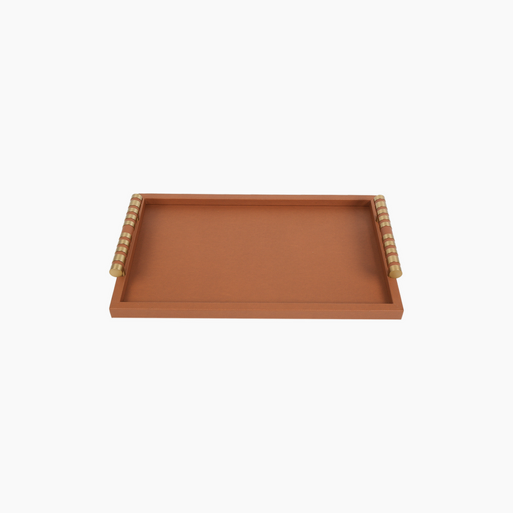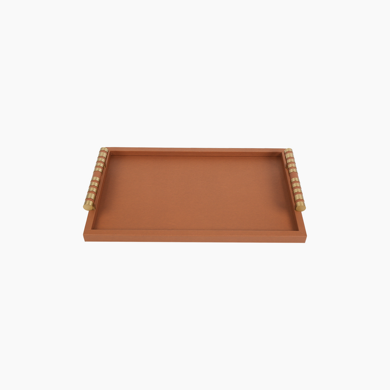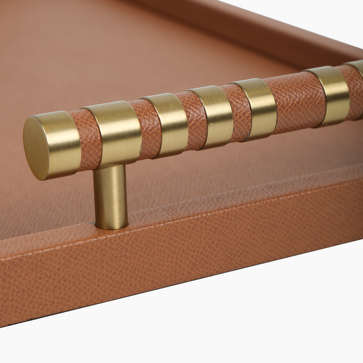 With its elegant leather texture and gold-colored details, this rectangular tray offers both style and functionality. Its brown tones complement any decor style, making it a striking addition to both everyday use and special occasions.