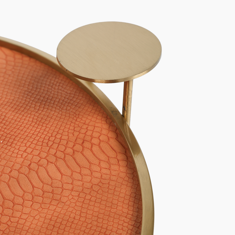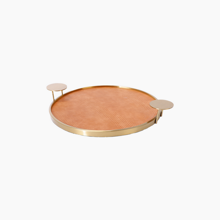 Combining luxurious leather texture with gold-colored details, this round tray offers a modern and sophisticated style. Its elegant design makes it both decorative and functional. It's ideal for special presentations and stylish decorations.