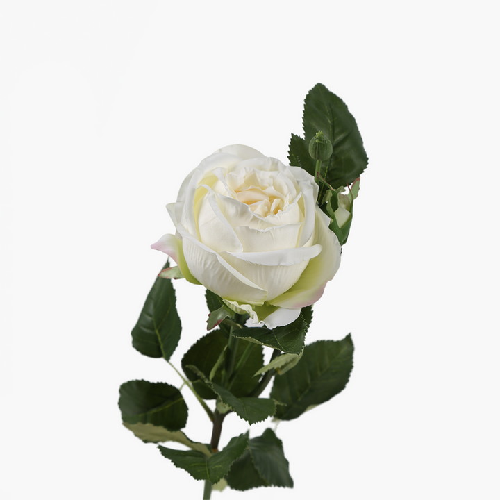 This 67 cm long cream rose branch is a classic and elegant decorative piece. Its natural look and detailed leaf design add a sophisticated touch to any interior style. It can be displayed alone in a minimalist vase or combined with other flowers to create a richer arrangement.