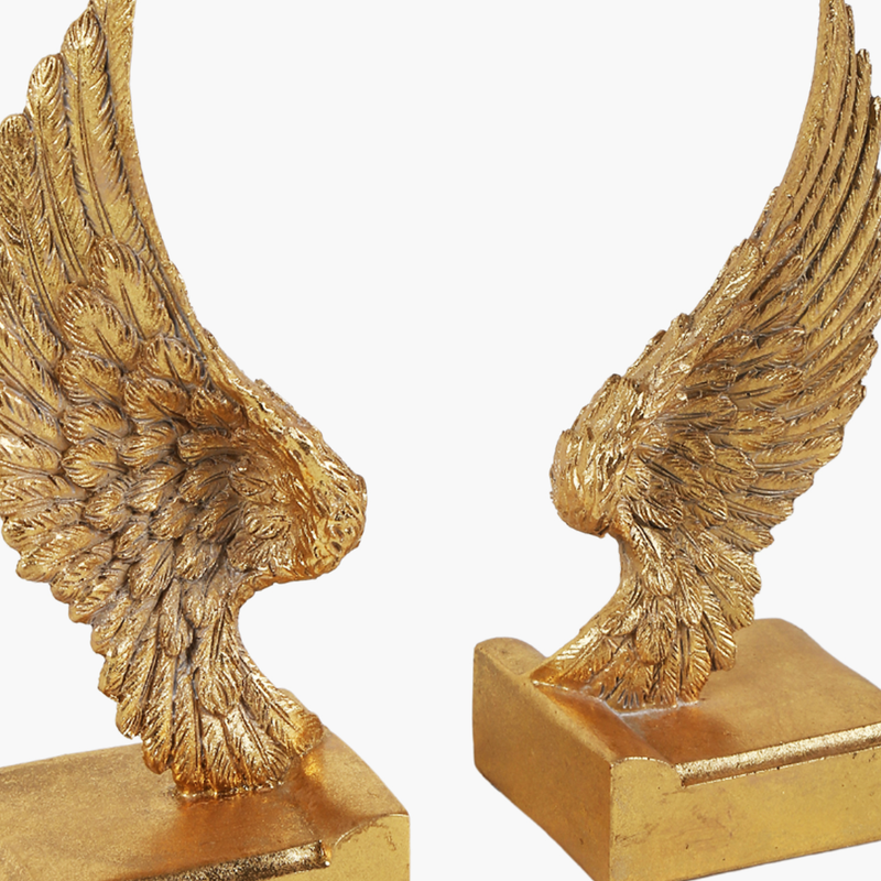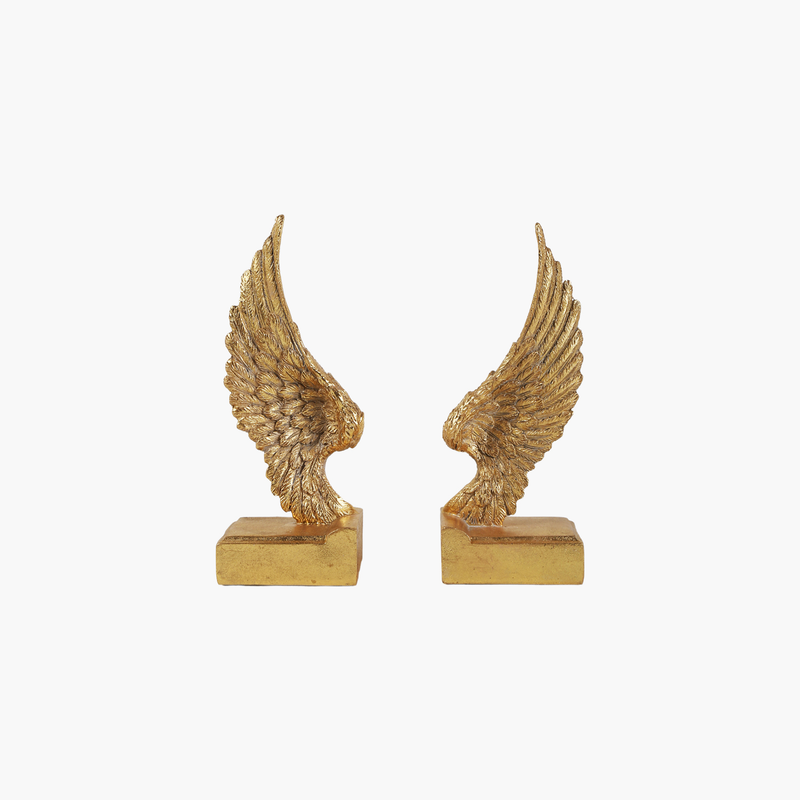 Ürün Metni: Şık ve zarif tasarımıyla bu 2'li kanat kitap tutucu, kitaplarınızı düzenlerken aynı zamanda dekorasyonunuza şıklık katacak. Altın rengindeki detayları ve zarif kanat figürleriyle bu obje, kitaplıklarınıza veya çalışma masanıza modern bir dokunuş getirir. Hem fonksiyonel hem de estetik olan bu kitap tutucular, geleneksel ve modern tarzları bir arada sunuyor.