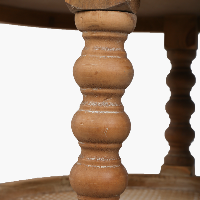 3 Katlı Yan Sehpa Doğal Ahşap Rattan 60X60X64cm