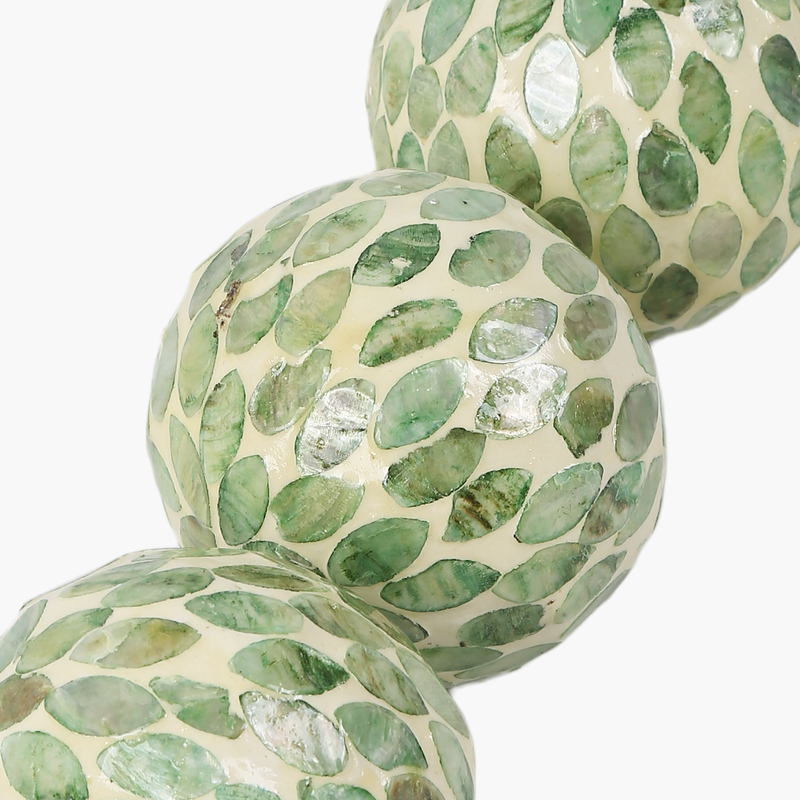 Ürün Metni: Bu 3'lü dekoratif küre seti, şık tasarımı ve doğadan ilham alan yeşil yaprak desenleriyle her türlü dekorasyona zarif bir dokunuş katıyor. Seramikten yapılmış ve el işçiliğiyle detaylandırılmış olan küreler, farklı açılardan bakıldığında birbirinden güzel bir doku ve renk geçişi sunar. Evde, ofiste veya otel gibi mekanlarda kullanılabilecek ideal bir aksesuar olup, modern ya da doğal tarzda dekorasyonlarla uyum sağlar.