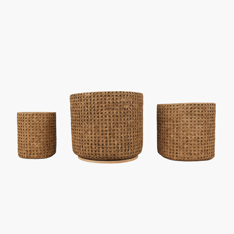 3'lü Saksı Set, doğal malzemelerden üretilmiş zarif tasarımıyla yaşam alanlarınıza doğal bir şıklık katar. Bu set, farklı boyutları sayesinde bitkilerinizi düzenli ve estetik bir şekilde sergilemenize olanak tanır. Dayanıklı ve hafif yapısı ile iç ve dış mekanlarda kolaylıkla kullanılabilir. Doğal dokusu ve zamansız tasarımı, hem evinizde hem de otel ve restoran dekorasyonlarında sıcak bir atmosfer yaratır.