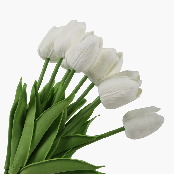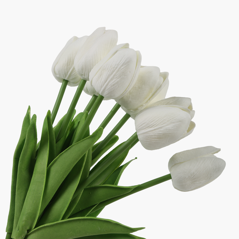 İpucu: Bu zarif beyaz lale buketini, pastel tonlarda dekoratif vazolarla kombinleyerek sofistike bir atmosfer yaratabilirsiniz. Ayrıca diğer yapay çiçeklerle bir araya getirerek kişisel tarzınızı yansıtabilirsiniz.