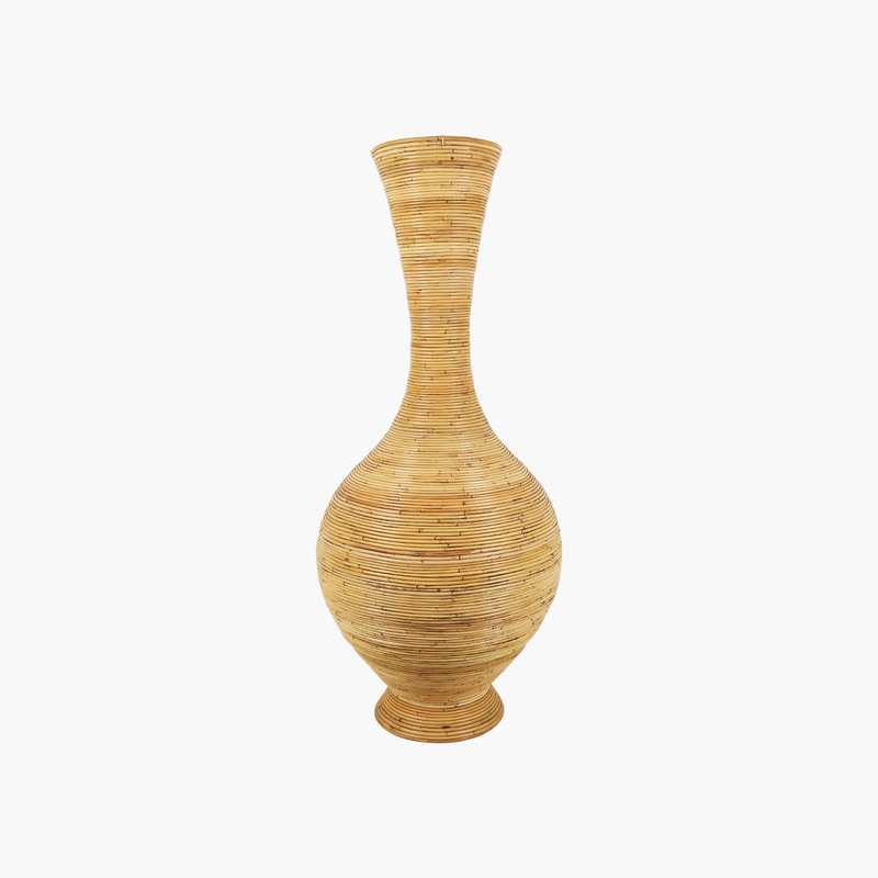 Aglo Rattan Vazo 145 cm, büyük iç hacmiyle hem iç mekanlarda hem de dış mekanlarda kullanılabilir. Diğer rattan veya doğal malzeme dekorasyon ürünleriyle kombinlenerek doğallığı vurgulayan şık bir dekorasyon yaratılabilir.