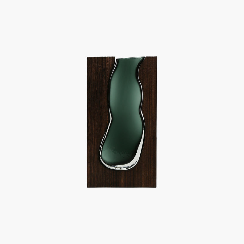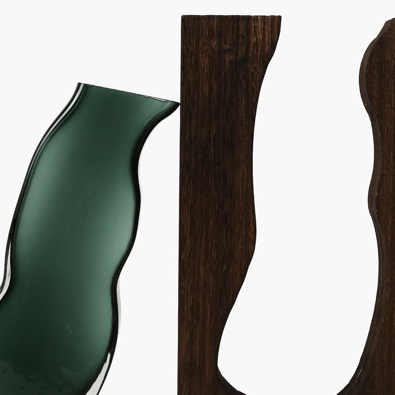 Ahşap&Cam Vazo Koyu Yeşil 7.5X17.5X32cm
