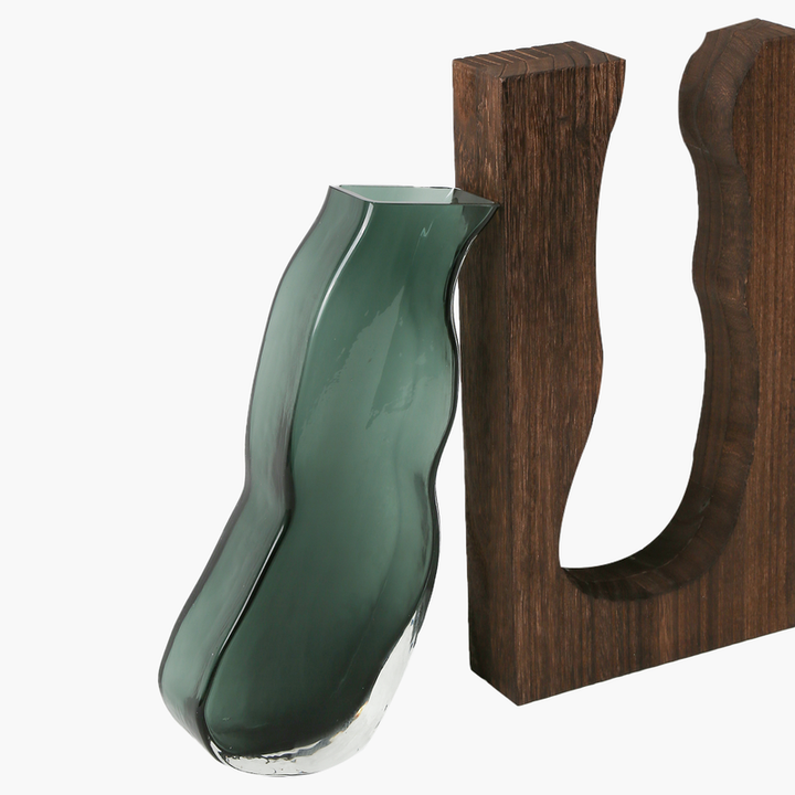 Ürün Metni: Bu zarif vazo, koyu yeşil camın modern formu ile ahşabın sıcak dokusunun mükemmel bir birleşimidir. Akışkan cam tasarımı, iç mekanınıza şık bir dokunuş eklerken, sağlam ahşap tabanı ile dikkat çeker. Estetik açıdan görsel bir denge oluşturan bu vazo, evinizde ya da otel ve restoran gibi mekanlarda şıklığı ve doğallığı bir araya getirir. Kış aylarında, özellikle sıcak aile buluşmalarında rahatlatıcı bir atmosfer yaratmak için mükemmeldir.