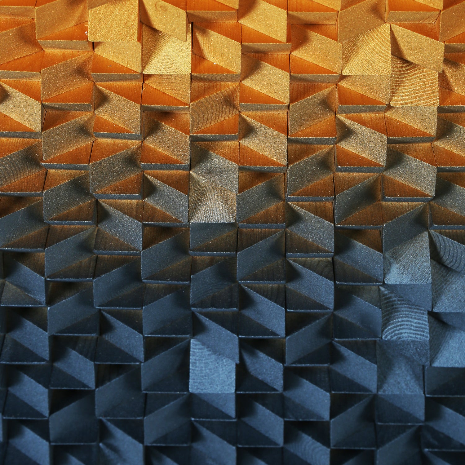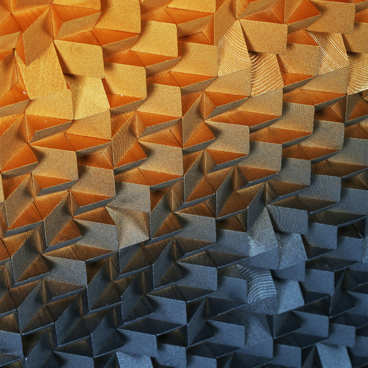 Renklerin ahenkli geçişi ve modern ahşap sanatıyla tasarlanmış bu 80x120 cm boyutlarındaki tablo, yaşam alanlarınıza sofistike bir dokunuş kazandırır. Ahşap küplerin düzenli geometrik dizilimi ve sıcak tonlardan soğuk tonlara geçiş, duvar dekorasyonunda büyüleyici bir etki yaratır.