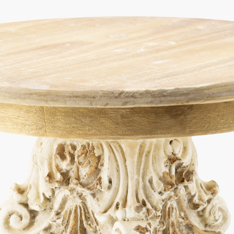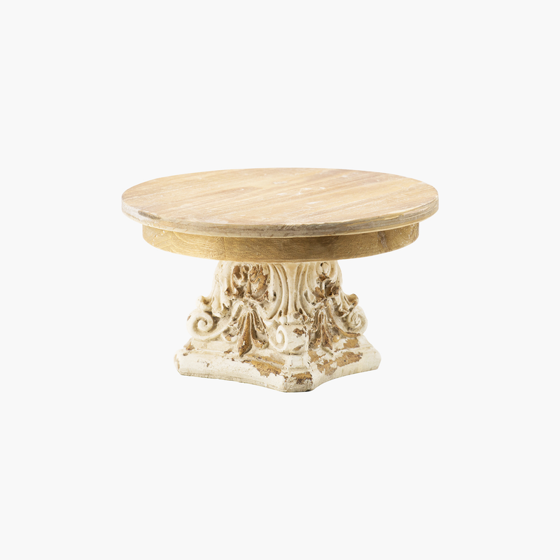 Klasik zarafeti ve doğal ahşap dokusuyla öne çıkan bu ayaklı sunum stant, dekorasyonunuza sofistike bir dokunuş katar. Özenle oyulmuş detaylı ayak kısmı ve ahşap tablası, hem şık hem de dayanıklı bir kullanım sunar. Pastalarınızı, atıştırmalıklarınızı ya da dekoratif objelerinizi sergilemek için ideal bir seçimdir. Evdeki sunumlarınıza zarafet katarken otel ve restoranlarda da benzersiz bir atmosfer yaratır.