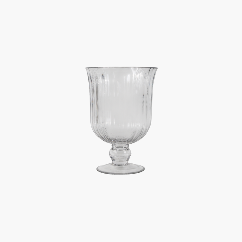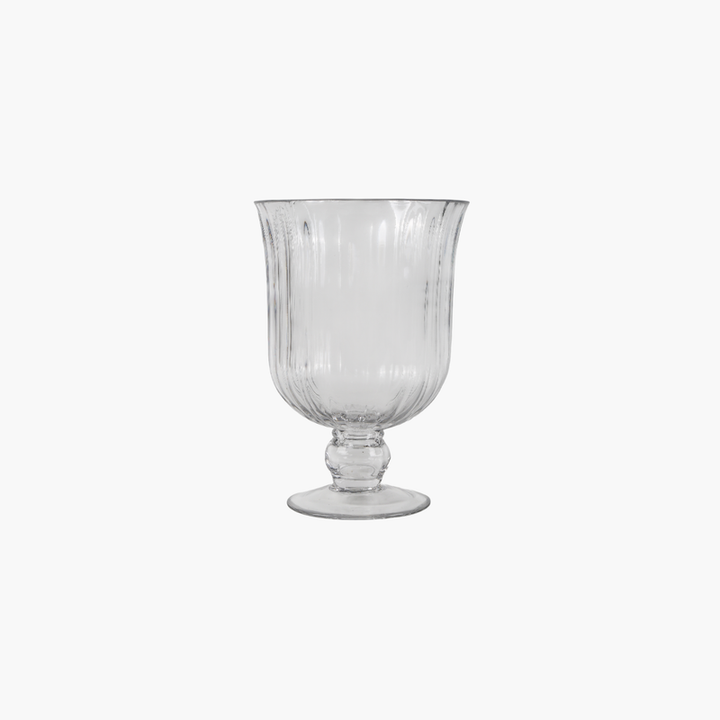 Ayaklı Vazo M, zarif tasarımı ve şeffaf cam yapısıyla her mekana sofistike bir dokunuş katıyor. Vazonun yuvarlak hatları ve ayak kısmı, ona klasik bir estetik kazandırırken, şeffaf cam malzeme şıklığını artırıyor. Bu vazo, özellikle çiçek aranjmanları veya dekoratif objelerle kullanıldığında zarif bir görünüm sunar.
