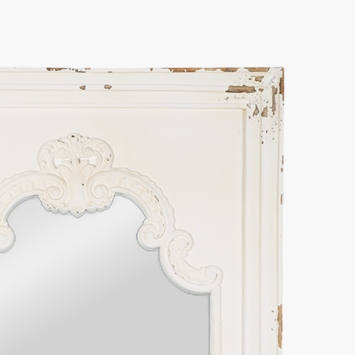 El işçiliğiyle detaylandırılmış bu zarif beyaz ayna, yaşam alanlarınıza sofistike bir dokunuş katar. Antik esintilerle tasarlanan bu ayna, hem fonksiyonel hem de estetik bir dekorasyon objesi olarak öne çıkar. Evinizdeki salon, yatak odası veya antrelerde ışığı yansıtarak ferah bir atmosfer yaratır.