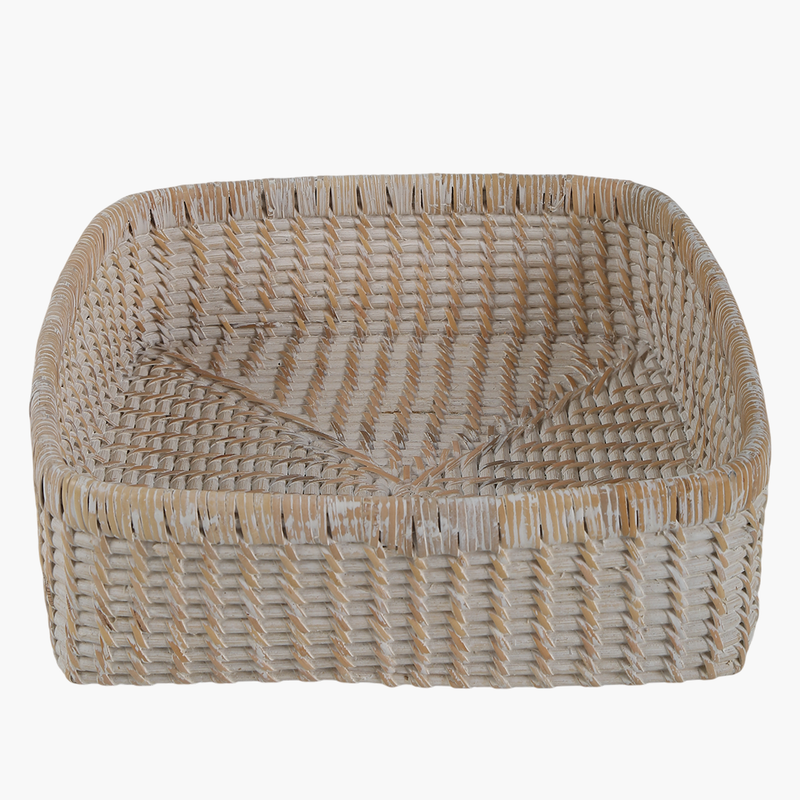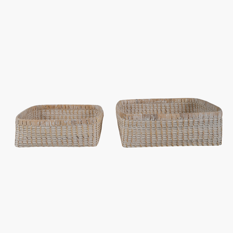 Ürün İsmi: Bambu 2'li El Dokuma Eskitme Beyaz Kare Kutu Set