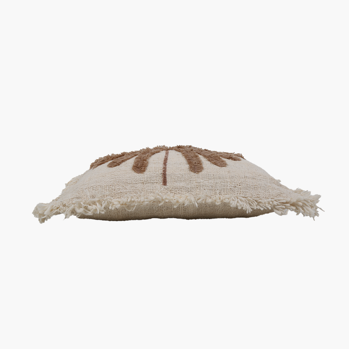Ürün İsmi: Beyaz Keten Büyük Palmiye Nakışlı Kare Kırlent