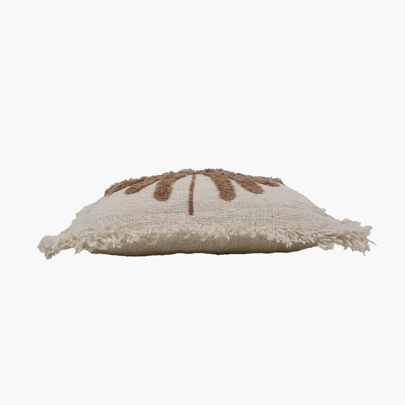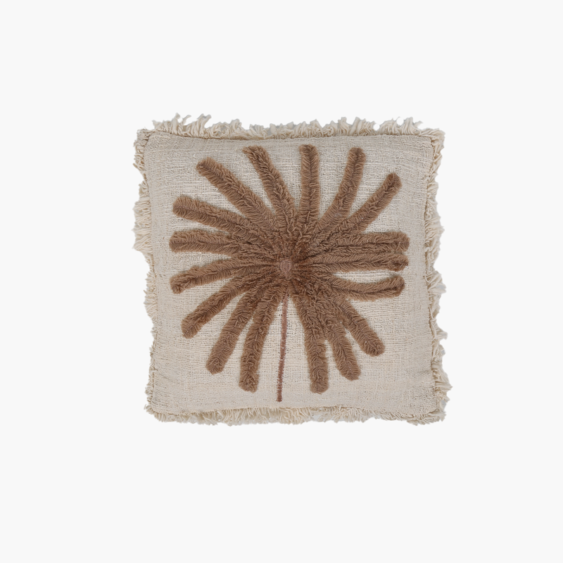 Doğal keten kumaşın zarifliği ve büyük palmiye nakışıyla dikkat çeken bu kare kırlent, yaşam alanlarınıza sofistike bir tropikal hava katar. El işçiliğiyle işlenen detaylar, sıcak ve samimi bir atmosfer yaratırken, hem modern hem de geleneksel dekorasyon stilleriyle uyum sağlar.