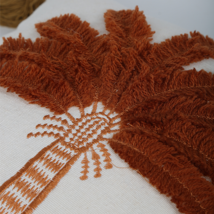 Ürün İsmi: Beyaz Keten Palmiye Nakışlı Kare Kırlent