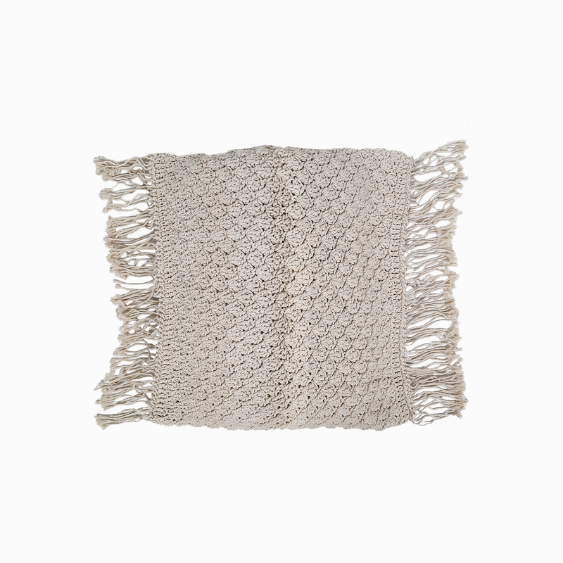 Beyaz Makrome Püsküllü Kare Kırlent 70 cm