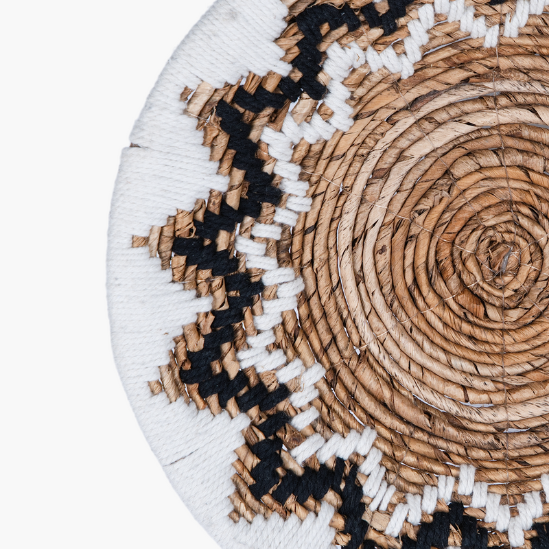Beyaz&Siyah&Natural Hasır Tabak Duvar Dekor S