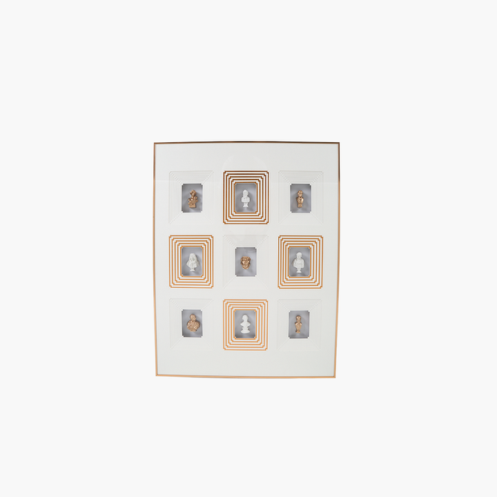 Tasarım: Minimalist çerçeve içerisine yerleştirilmiş dokuz büst figürü