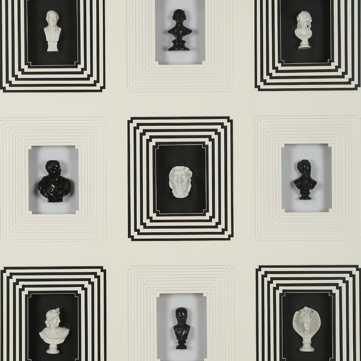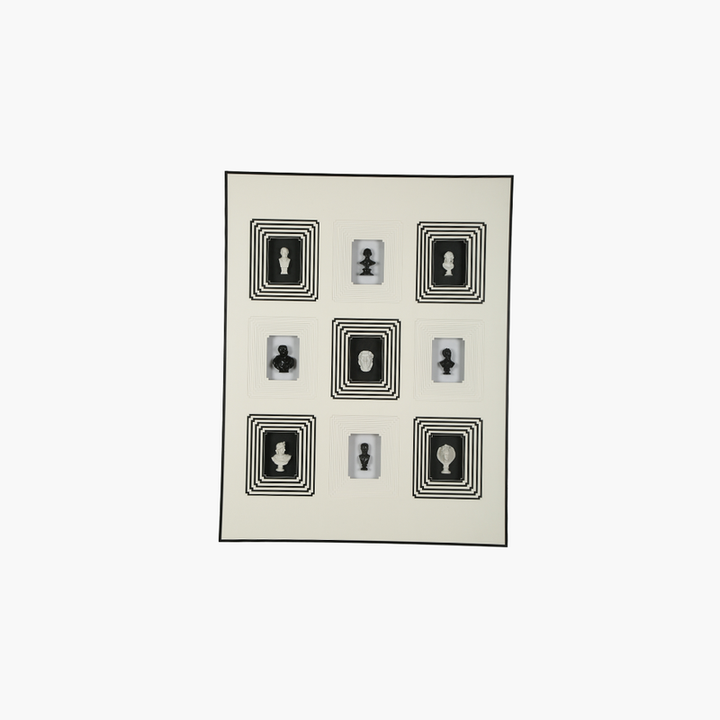 Tasarım: Minimalist çerçeve içerisine yerleştirilmiş dokuz büst figürü
