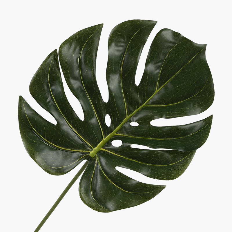 79 cm uzunluğundaki bu büyük yaprak dal, gerçekçi detayları ve canlı yeşil tonlarıyla dikkat çeker. Dekoratif bir vazo içinde tek başına sergilenebilir ya da aranjmanlara tropikal bir dokunuş katmak için kullanılabilir. Dayanıklı yapay malzemeden üretilmiştir ve uzun süre bakım gerektirmeden kullanılabilir. Modern ve doğal dekorasyonların vazgeçilmez tamamlayıcısıdır.