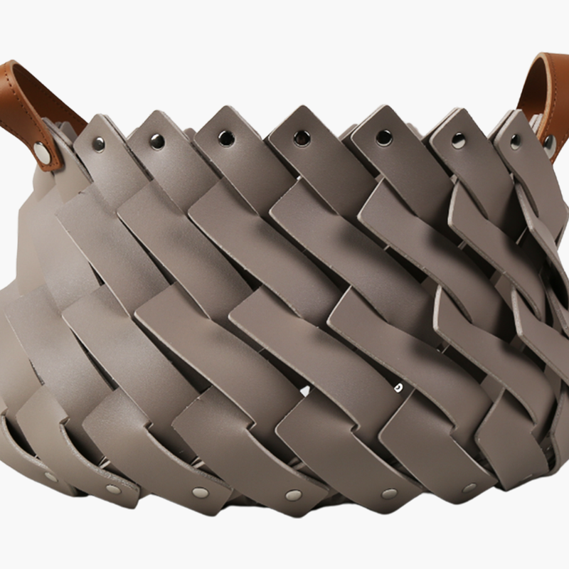 Ürün İsmi: ∅40X27cm Deri Kulplu Storage Sütbeyaz