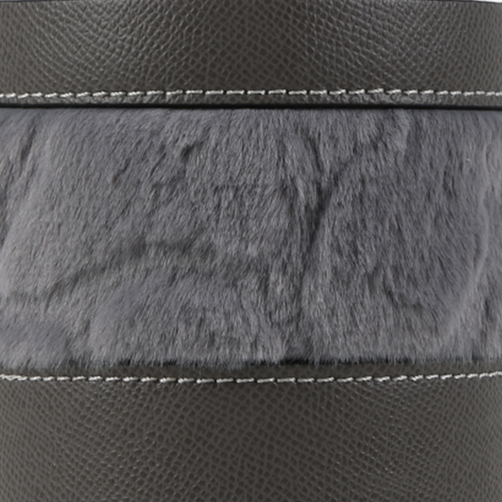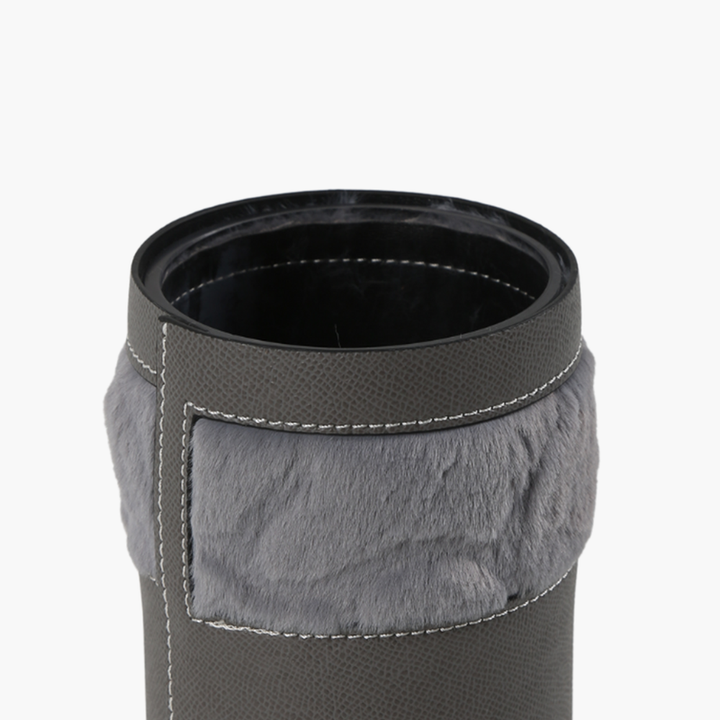 Deri Vazo Antrasit L, modern tasarımı ve zarif detaylarıyla öne çıkar. Antrasit tonundaki deri kaplama, kürk detaylarıyla tamamlanarak şık ve sofistike bir görünüm yaratır. Evinizde veya mekanınızda zarif bir atmosfer oluşturan bu vazo, aynı zamanda şıklığı ve zarafeti ile dikkat çeker. İç mekanlarda lüks bir dokunuş sağlarken, otel ve restoran gibi mekanlarda da modern bir atmosfer yaratır.