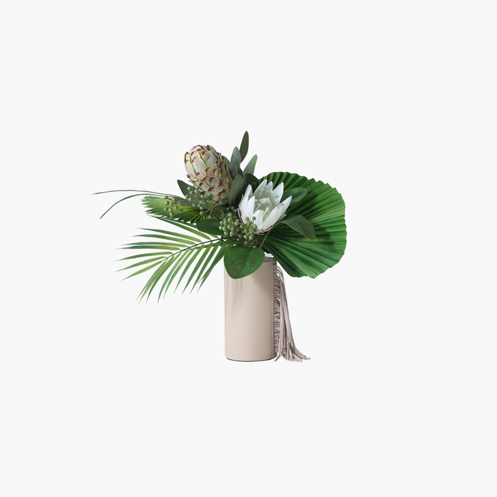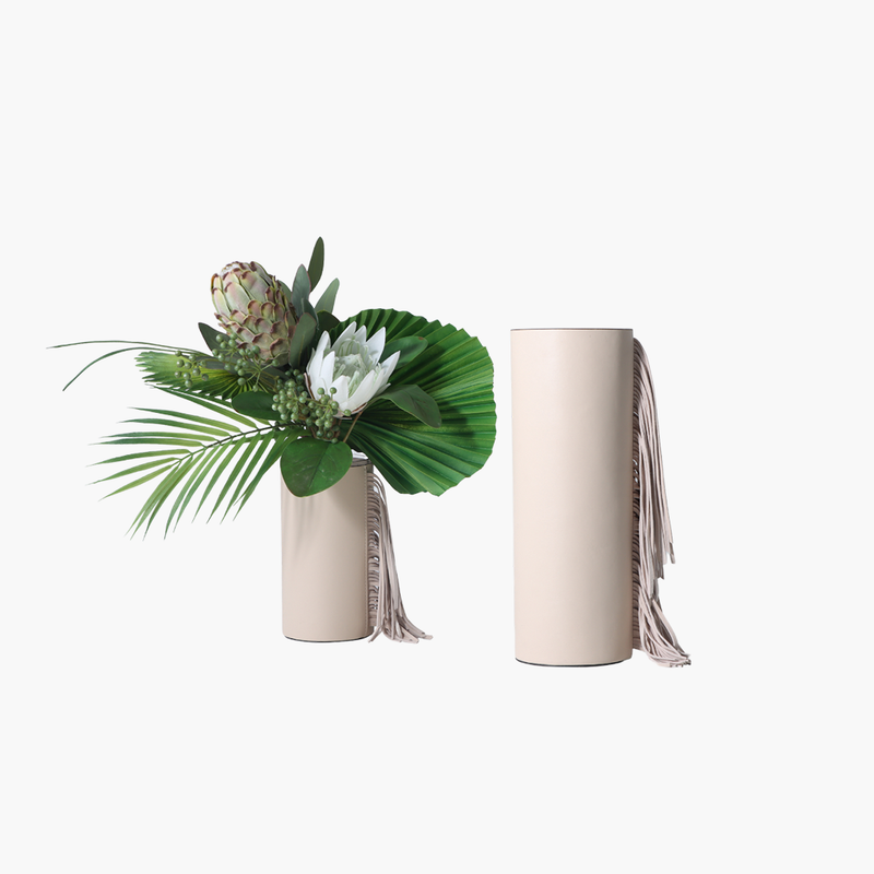İpucu: Bu deri vazoyu doğal tonlardaki diğer dekoratif ürünlerle bir araya getirerek sofistike bir görünüm yakalayabilirsiniz. Jasmin Concepts'in minimalist koleksiyonuyla kombinleyerek modern ve dengeli bir dekorasyon tarzı oluşturabilirsiniz.