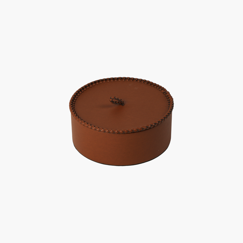 Deri Yuvarlak Kutu Kahverengi S 21X11cm