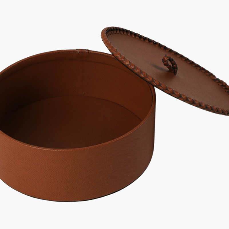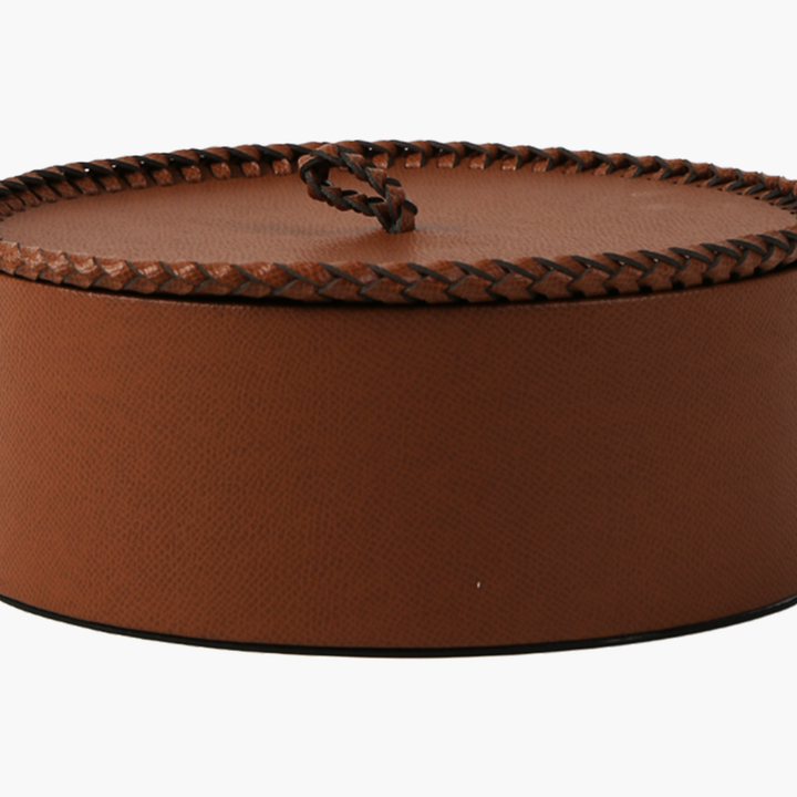 Ürün İsmi: ∅21X11cm Deri Yuvarlak Kutu Kahverengi