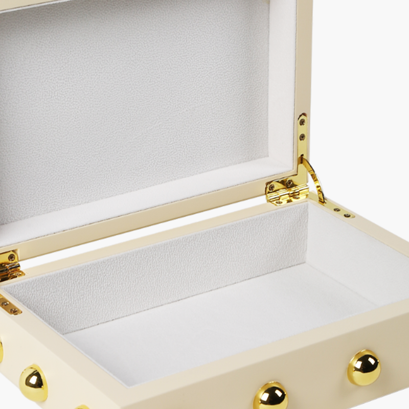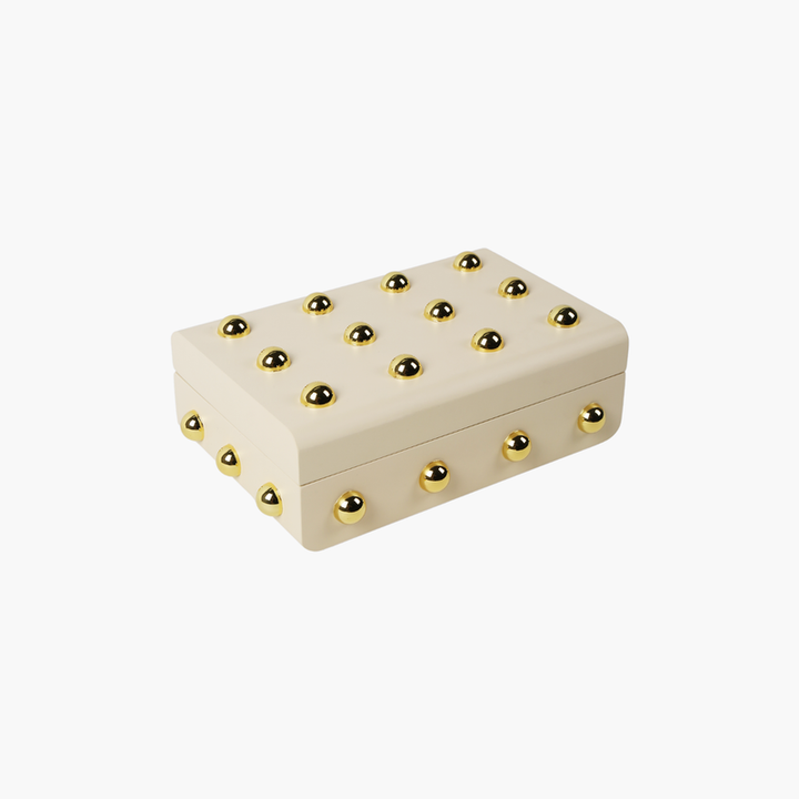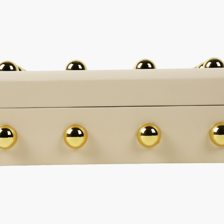 Ürün Metni: Şık tasarımı ve kaliteli malzemesiyle bu bej renkli dikdörtgen kutu, zarif altın detaylarıyla dikkat çeker. Hem dekoratif hem de işlevsel olan bu kutu, değerli eşyalarınızı güvenle saklamak için mükemmel bir seçimdir. İç kısmında yumuşak astar bulunur, böylece eşyalarınızın zarar görmesini engeller. Minimalist tarzı, modern ve klasik dekorasyonlarla kolayca uyum sağlar.