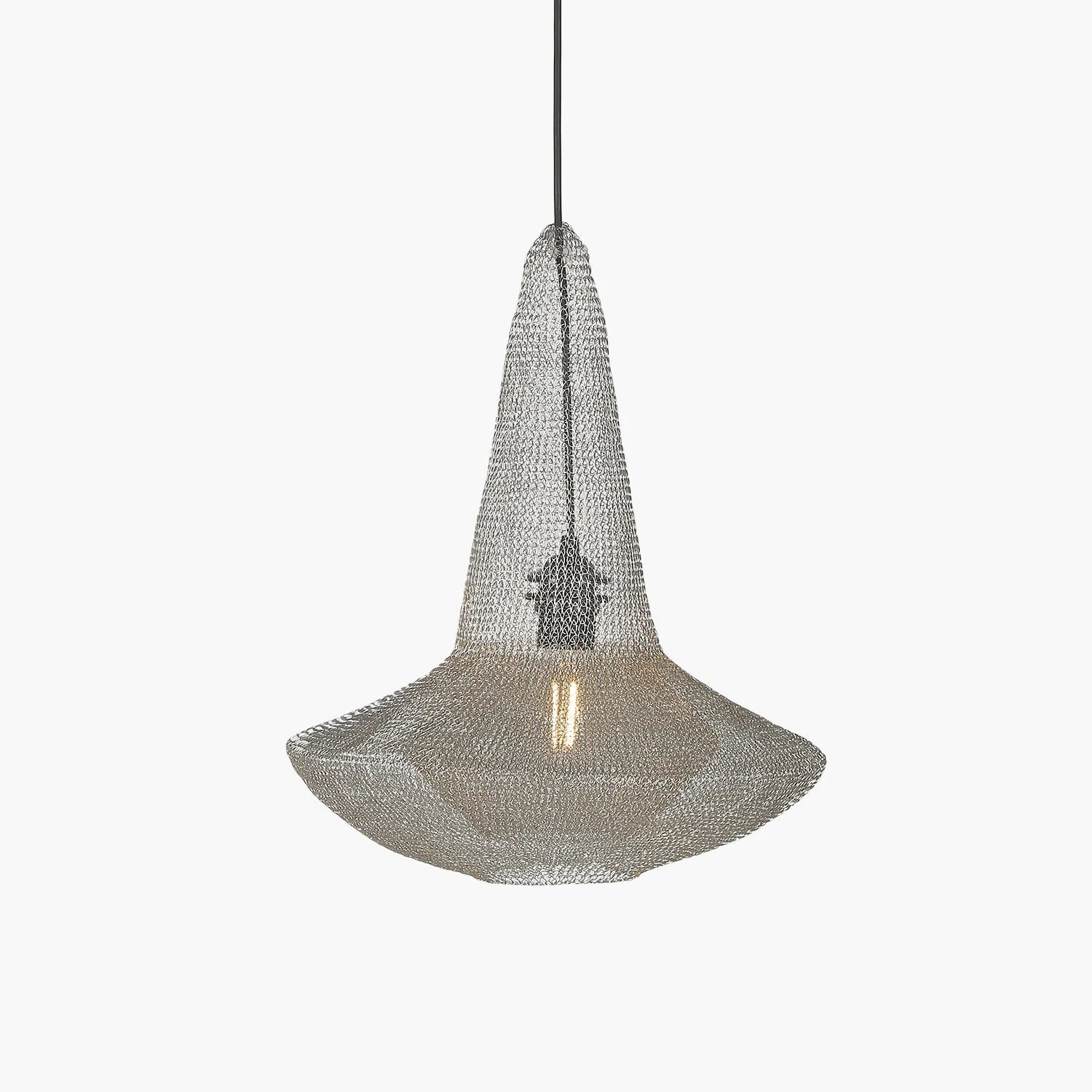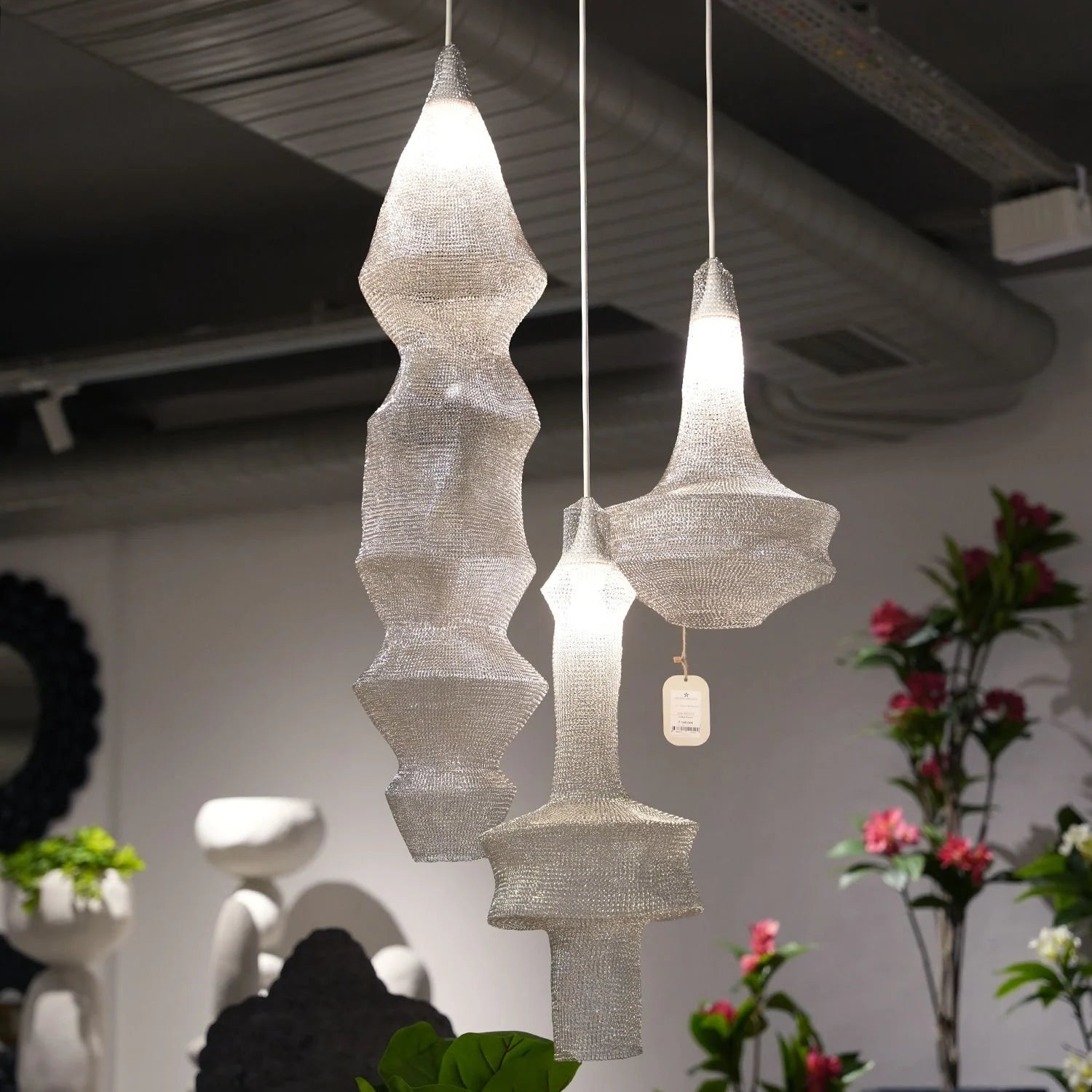 "Tel Avize B" isimli bu el yapımı tel avize, sanatsal zarafeti modern tasarım ile birleştiriyor. Yüksek kaliteli gümüş renkli telden yapılmış, yumuşak hatlara sahip gövdesi her mekâna benzersiz ve yaratıcı bir atmosfer katıyor. Yemek masasının üzerinde, oturma odasında veya şık bir otel lobisinde kullanım için mükemmel bir tercih olan bu avize, telin ışık geçişiyle büyüleyici ışık ve gölge oyunları yaratarak ortamı benzersiz kılıyor.