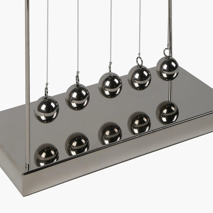 "Endless" Newton sarkaçı, sadece bir dekor değil, aynı zamanda bilim, hareket ve dengenin sembolüdür. Zarif metal toplar, ileri geri salınım yaparak rahatlatıcı bir etki yaratır – çalışma masaları, oturma odaları ya da ofisler için mükemmel bir seçimdir. Bu zamansız dekorasyon, ortamınıza hem şıklık hem de eğlenceli bir dokunuş katar.