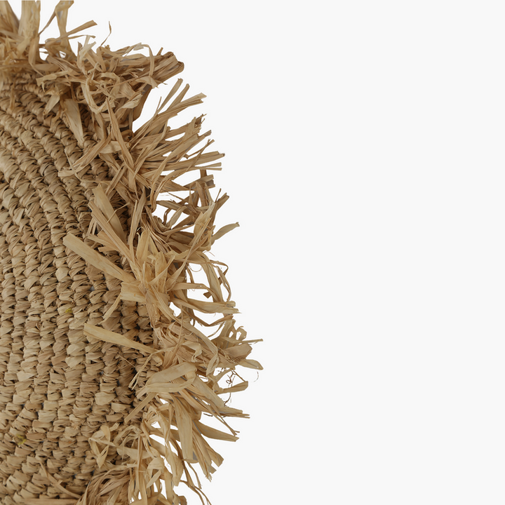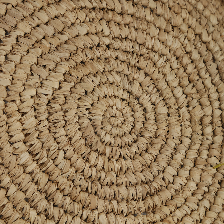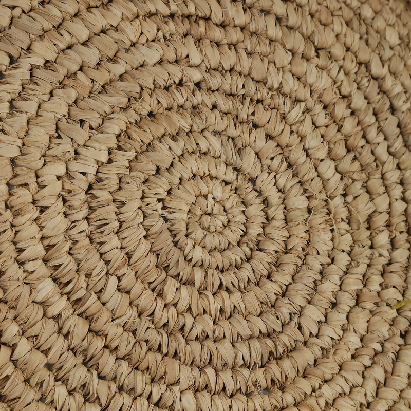 İpucu: Bu yuvarlak hasır kırlenti, farklı dokulardaki yastıklarla birleştirerek dikkat çekici bir dekoratif düzen oluşturabilirsiniz. Özellikle ahşap mobilyalarla kombinlediğinizde, yaşam alanlarınıza doğal bir bütünlük katacaktır.