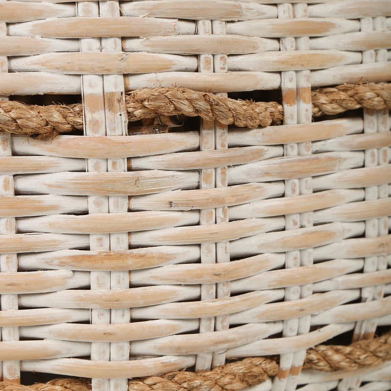 Hom Beyaz Eskitme Rattan Sehpa'yı, bitkiler veya doğal tekstil ürünleriyle tamamlayarak otantik bir dekorasyon oluşturabilirsiniz. Jasmin Concepts'in diğer rattan ürünleriyle kombin yaparak uyumlu bir dekoratif stil yaratabilirsiniz.