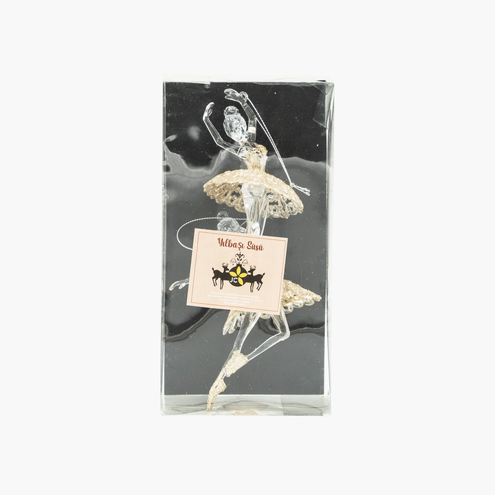 JC Akrilik Altın Simli Balerin Süs Seti (2 Parça) 17x7.5/16.5x7cm