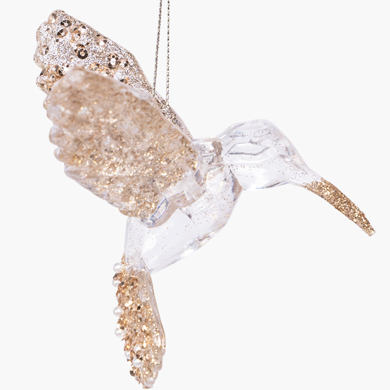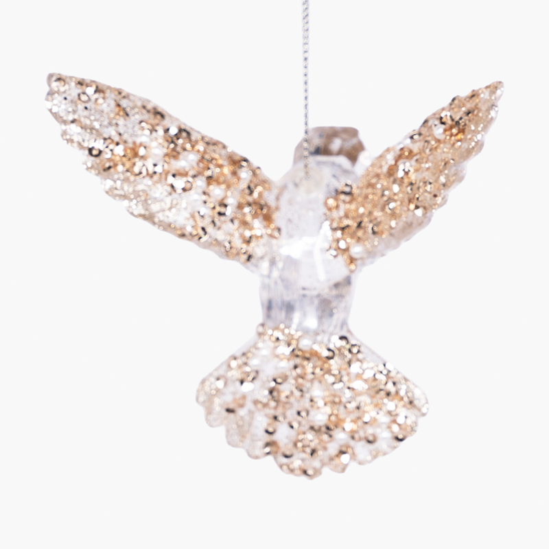 JC Akrilik Altın Simli Kuş Süsü 7.5x9.5x11cm