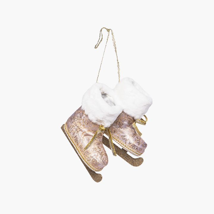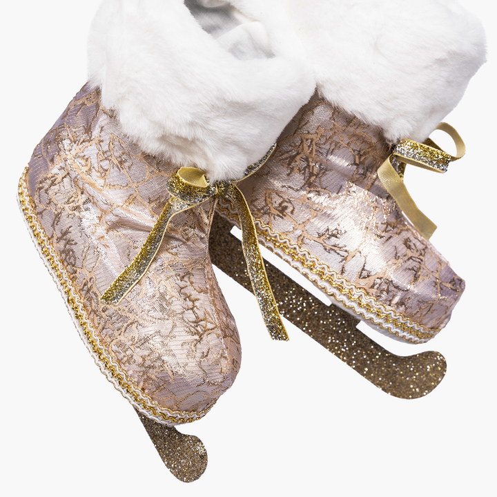 JC Altın 2'li Buz Pateni 20 cm, kış ruhunu zarif bir şekilde evinize taşıyor. Altın simli detaylarla süslenmiş patenler, beyaz kürklü üst kısmıyla sıcak ve şık bir görünüm sunar. Yılbaşı ağacında, kapı süslerinde veya duvar dekorlarında kullanılarak ortama nostaljik bir kış masalı atmosferi katar.