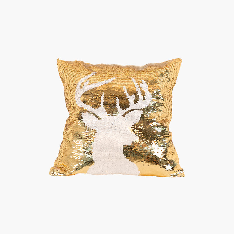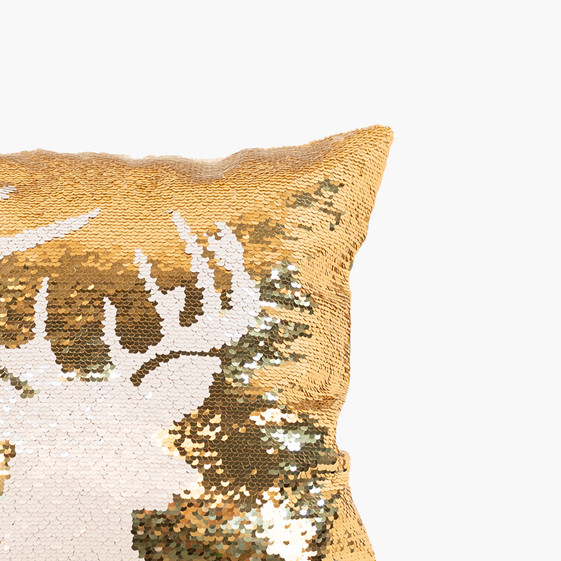 JC Altın, Beyaz Payetli Geyik Başlı Yastık 40cm