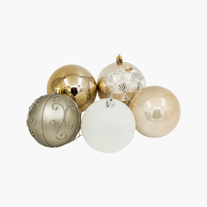 Asil ve zarif bir yılbaşı dekorasyonu için hazırlanan JC altın-beyaz simli premium ağaç süsü seti, farklı boyutlardaki parçalarıyla ağacınıza derinlik ve bütünlük katar. 6 cm’lik küçük toplar ile 15 cm’lik büyük topların kombinasyonu, dekorasyonunuza hem detaylı hem de dikkat çekici bir görünüm kazandırır. Altının parlak ışıltısı ve beyazın saf zarafeti birleşerek hem evlerde hem de mekanlarda sofistike bir atmosfer yaratır.