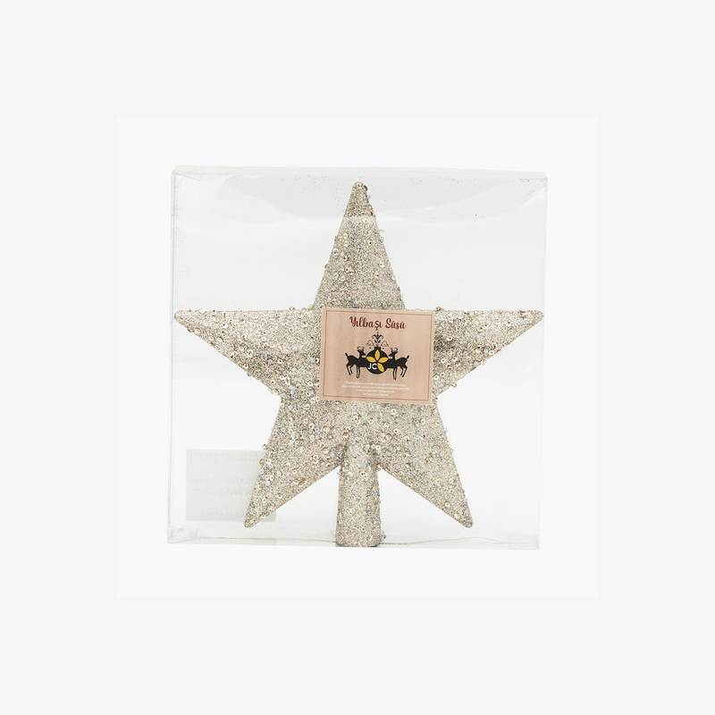 Yılbaşı ağacınızın en ihtişamlı tamamlayıcısı olacak JC altın gümüş yıldız ağaç başlığı, zarif parıltısıyla dekorasyonunuza şıklık katar. Simli yüzeyi ışıkla buluştuğunda büyüleyici bir yansıma oluşturur ve ağacın en üst noktasında tüm süslemeyi taçlandırır. Modern iç tasarım ürünleri arasında klasikleşmiş bu yıldız formu, hem evlerde hem de mekanlarda masalsı bir kış atmosferi yaratır.