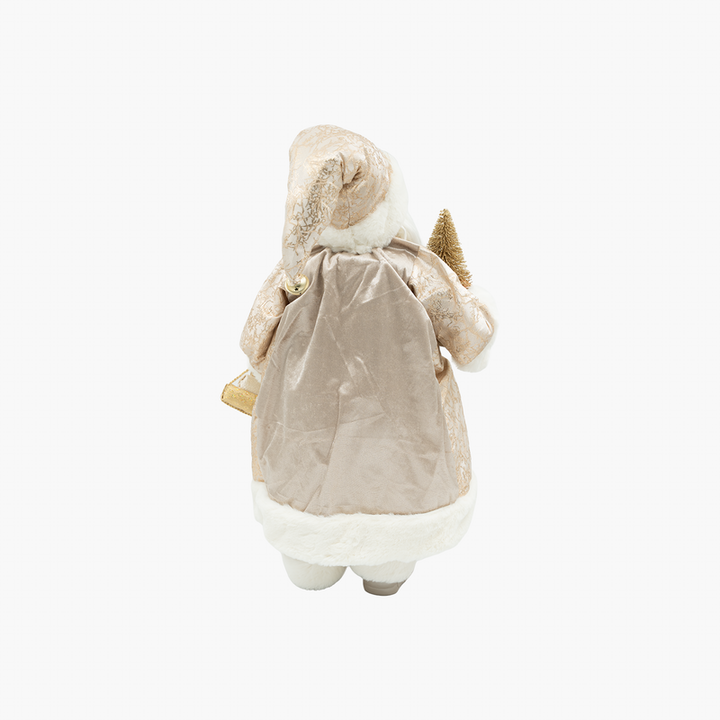 JC Altın Noel Baba 45cm, ihtişamlı görünümü ve altın detaylarıyla yılbaşı dekorasyonlarına lüks bir atmosfer katar. Elinde ışıltılı hediye paketi ve çam ağacı tutan bu figür, bolluk ve neşeyi simgelerken, bulunduğu ortama zarafet ve sıcaklık kazandırır. Orta boyutuyla sehpa, vitrin, konsol ya da giriş alanlarında dekoratif odak noktası yaratır.
