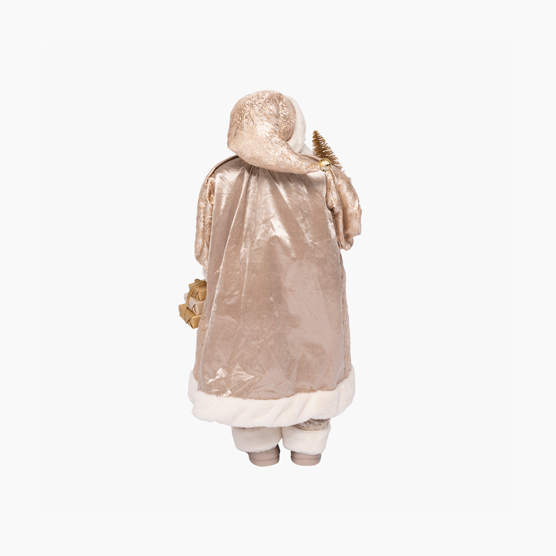 JC Altın Noel Baba 60cm, yılbaşı dekorasyonlarına zarif ve göz alıcı bir dokunuş katar. Altın detaylarla işlenmiş kıyafeti, elindeki hediye paketi ve çam ağacı figürüyle bolluğu ve mutluluğu simgeler. Orta-büyük boyutuyla ev, otel lobisi, mağaza vitrinleri ve özel davet alanlarında etkileyici bir odak noktası oluşturur.