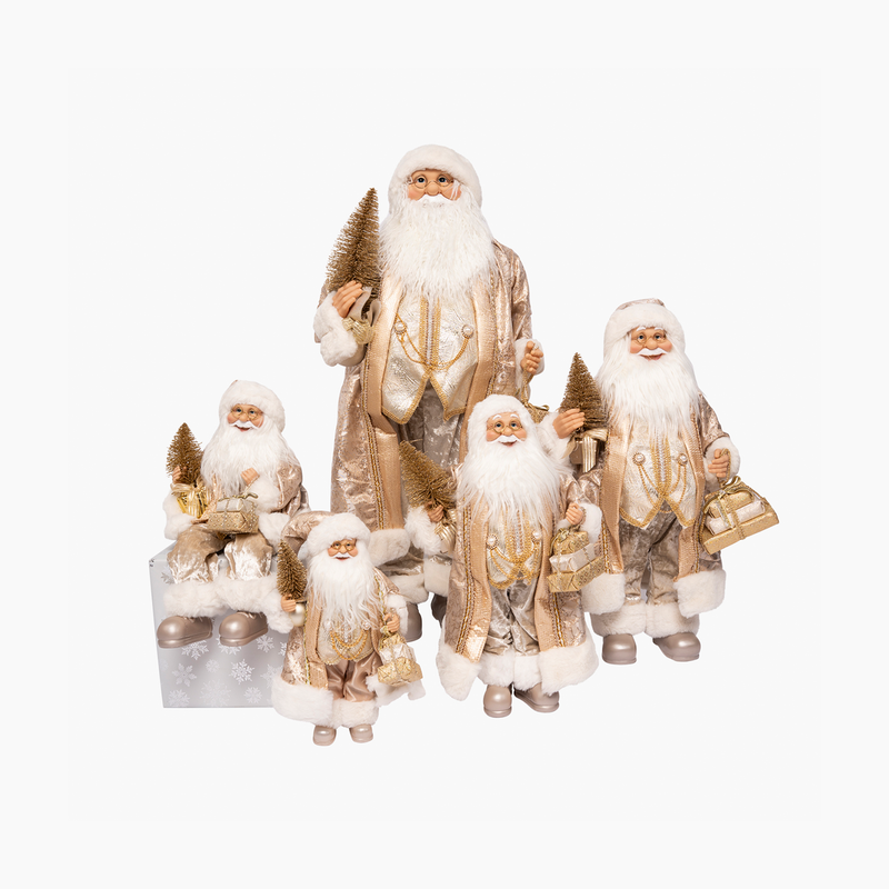 JC koleksiyonundaki 30 cm, 45 cm ve 90 cm altın Noel Baba figürleriyle kombinlendiğinde yükseklik farkları sayesinde dekorasyonda katmanlı bir görünüm yaratır. Ayrıca JC’nin kırmızı ve pembe serileriyle birlikte kullanıldığında, kontrast renkler sayesinde dekorasyonun daha zengin ve sofistike bir hale gelmesine katkı sağlar. Özellikle vitrin düzenlemelerinde, merdiven basamaklarında ya da geniş masa süslemelerinde güçlü bir bütünlük oluşturur.