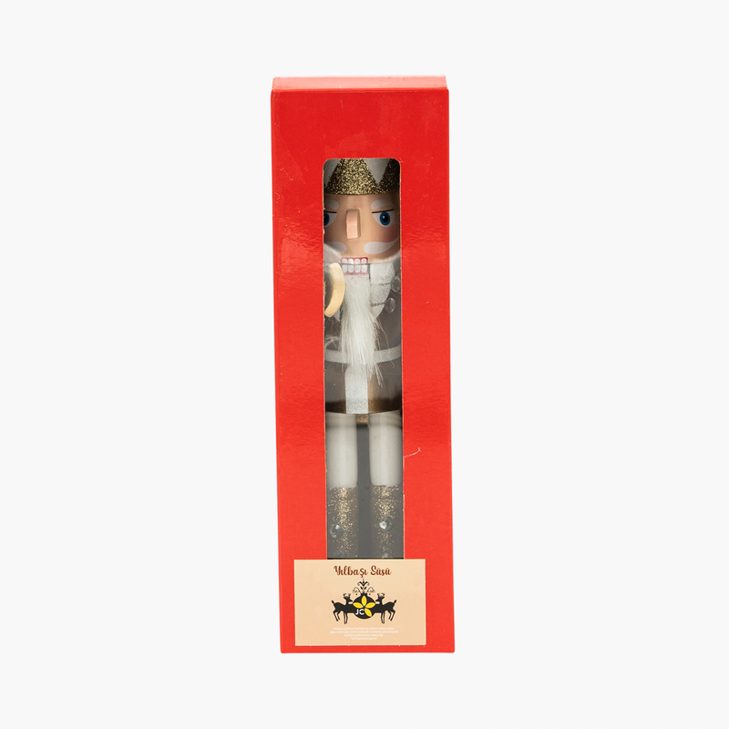 Zarif beyaz ve altın detaylarıyla tasarlanan JC Nutcracker, klasik dekor anlayışını modern şıklıkla buluşturuyor. Elinde taşıdığı asası ve altın stant üzerinde sergilenen güçlü duruşu, evinize ihtişamlı bir atmosfer katar. Özellikle yılbaşı süslemelerinde sofistike bir tamamlayıcı olarak tercih edilebilecek bu özel parça, dekorasyona masalsı bir dokunuş sağlar.