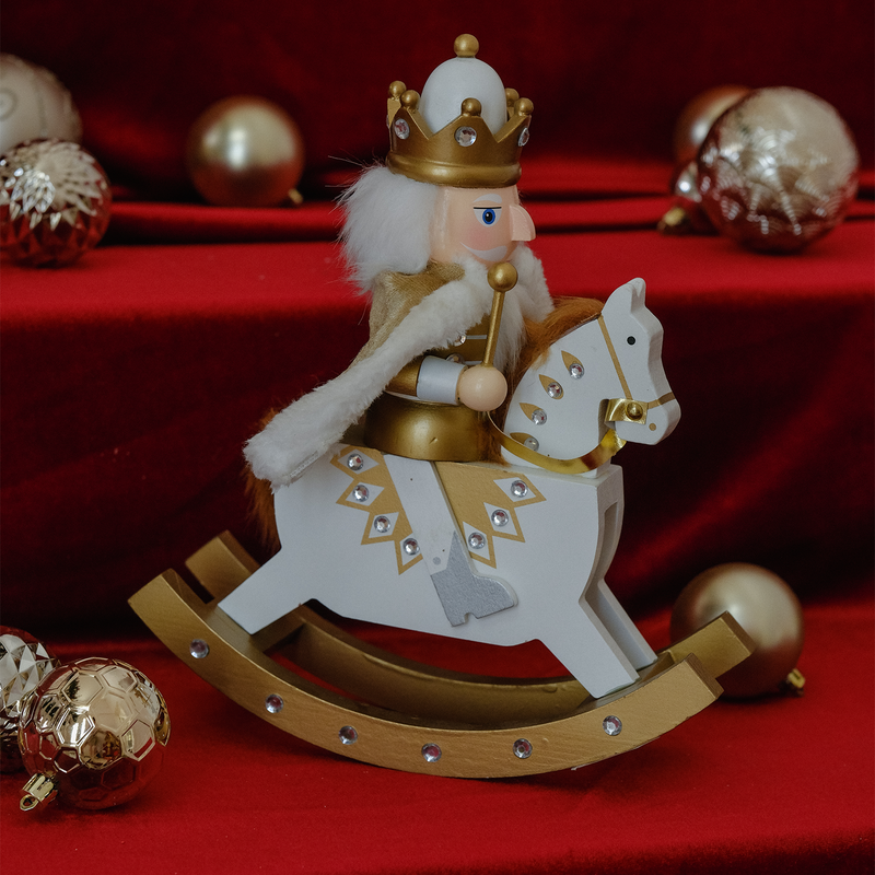 JC Beyaz/Altın Sallanan At Nutcracker 30cm