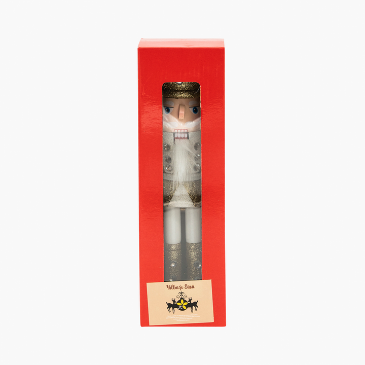 JC’nin zarif koleksiyonuna ait Beyaz & Altın Stantlı Taçlı Nutcracker, ev dekorunuza klasik bir ihtişam katıyor. Beyazın saflığını ve altının göz alıcı ışıltısını bir arada sunan bu figür, özellikle yılbaşı süslemelerinde şıklığı ve asaleti simgeliyor. Taç detayı, güçlü ve asil bir görünüm kazandırarak dekorasyonunuzda göz alıcı bir odak noktası yaratır.